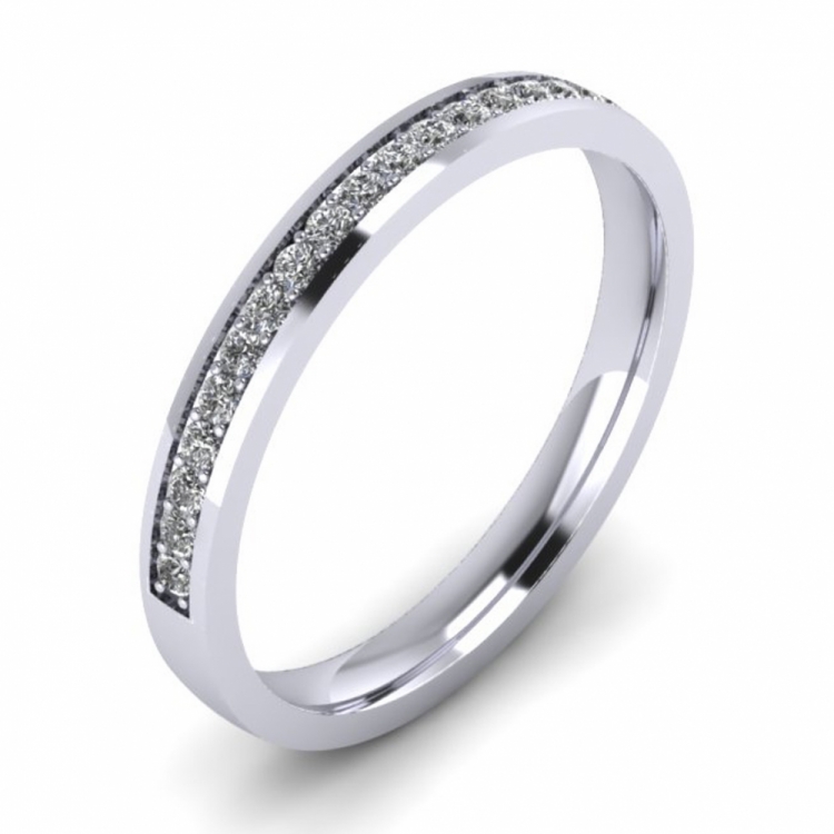Using a 2.5mm wide flat court, this ring is set with 0.01ct diamonds as a true half. (Approx 0.24ct depending on finger size).