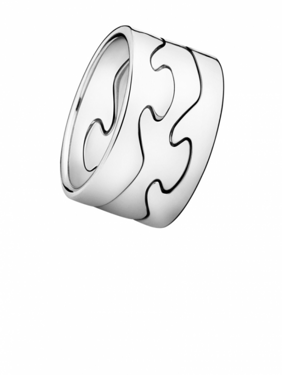 Beautifully crafted in 18 carat white gold, these three Georg Jensen Fusion rings fit together to make a single ring that can be worn by men or ladies. At Jeremy Bloomfield, we find that the set of three offers great flexibility to the wearer, as he or she can wear just one or two of the Fusion rings to create a new look as desired.