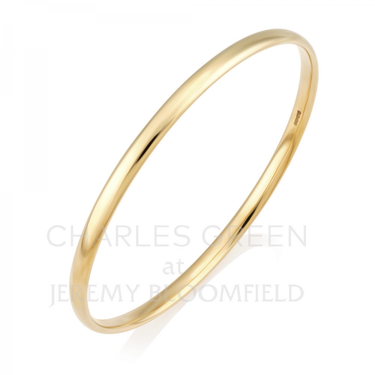 Handcrafted in the U.K by Charles Green, this Solid Gold Court Shaped Bangle is a substantial piece that is finished to the highest quality. This profile is rounded on the inside and outside for comfort and is available in 3mm.