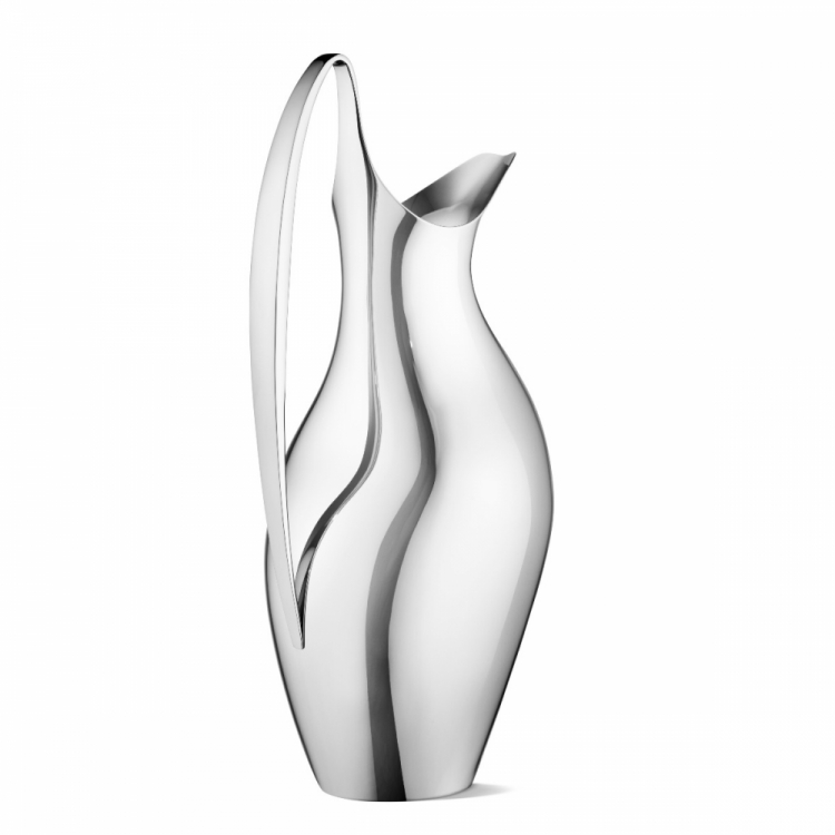 The pitcher is one of his most famous pieces and was first formed in 1952. It is spare but sensuous, with an elegantly extended handle and exaggerated lip. Georg Jensen began as a silversmith; this collection is a modern interpretation of the legacy of excellent craftsmanship that dates from the very beginning.