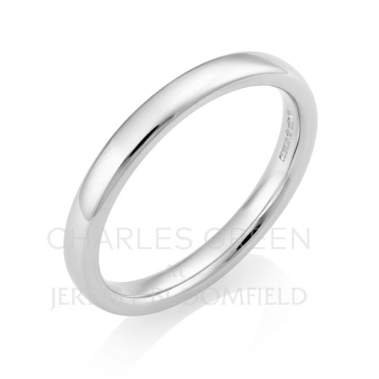 Handcrafted in the U.K by Charles Green this luxury court wedding ring is finished to the highest quality. The profile is rounded on the inside and outside and is available in a variety of widths. The depth ranges approximately from 2.2mm-2.4mm, however depths and sizes vary as it is a handcrafted ring.