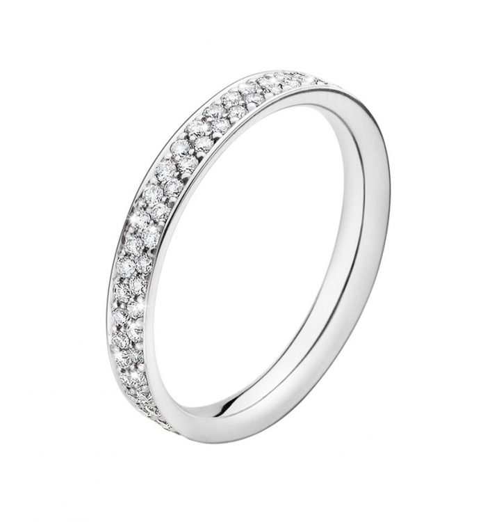 Highlighting the true magic of pure white diamonds, this minimal white gold ring combines luxury with a sense of understatement that is quintessentially Scandinavian. The pavé set diamonds are framed in a simple setting that allows their beauty to take centre stage and means that the ring looks striking when worn alone or can easily be stacked with others for a more individual expression.