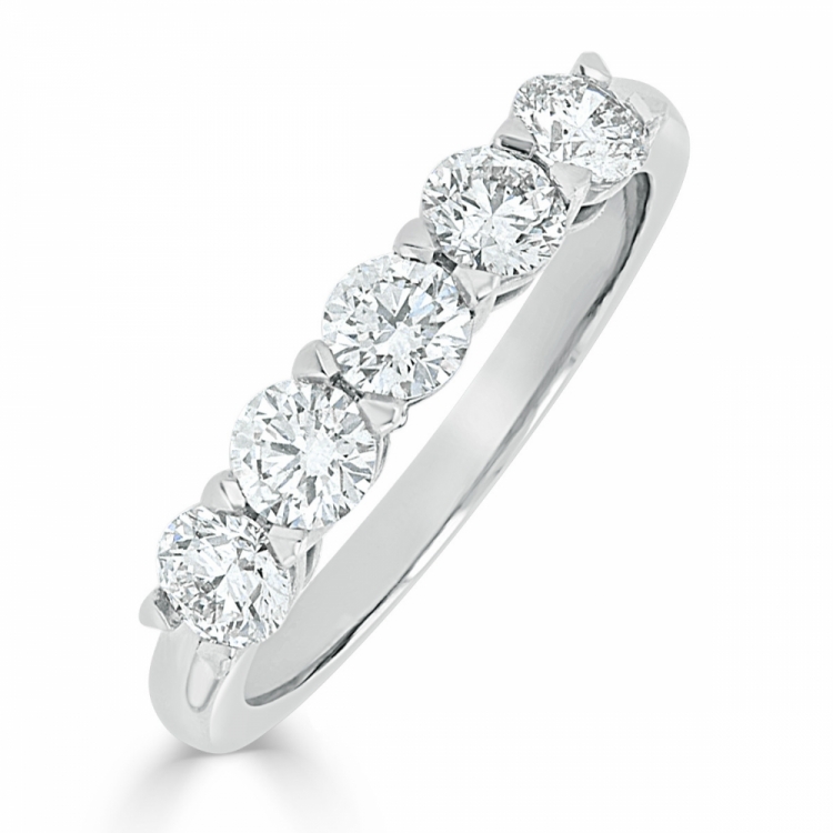 This Platinum ring is set with 5 x 0.2ct calibrated G VS diamonds, total ct weight 1.00cts