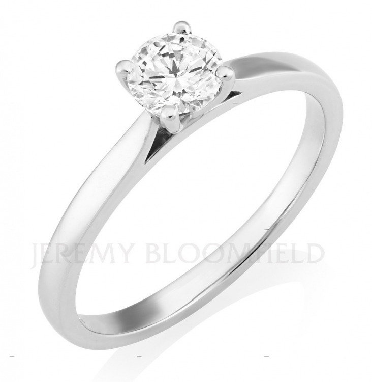 A classic 4-claw set Round Brilliant Solitaire Engagement Ring with a 0.70ct G colour diamond, in a strong Platinum setting. The diamond comes with a GIA certificate (Gemological Institute of America).