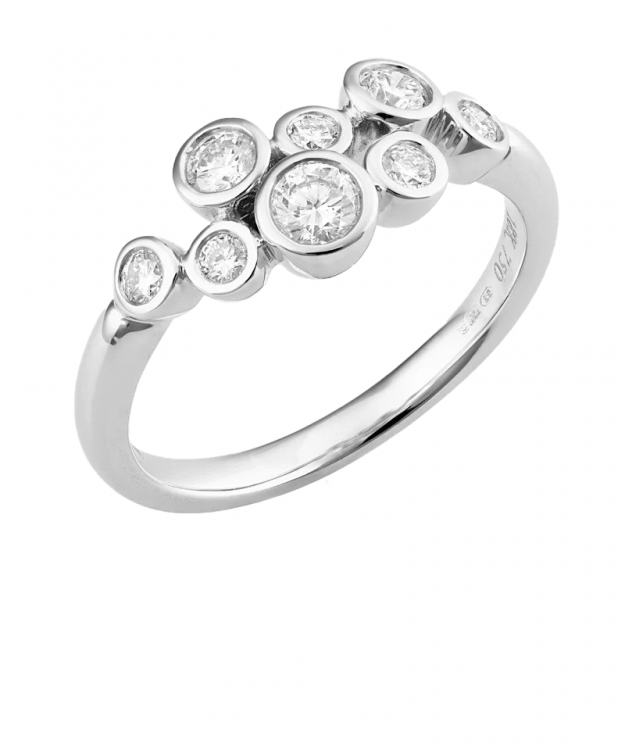Platinum and brilliant cut diamond "bubble" style ring by Sheldon Bloomfield. The diamonds are G in colour SI1 in clarity and a total of 0.52cts in weight.