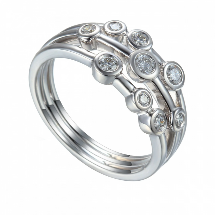 Platinum, brilliant cut 1.01ct G colour SI1 clarity "bubble" style ring by Sheldon Bloomfield.